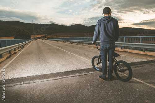 Guy with a bmx bike. BMX rider. Extreme urban sports concept
