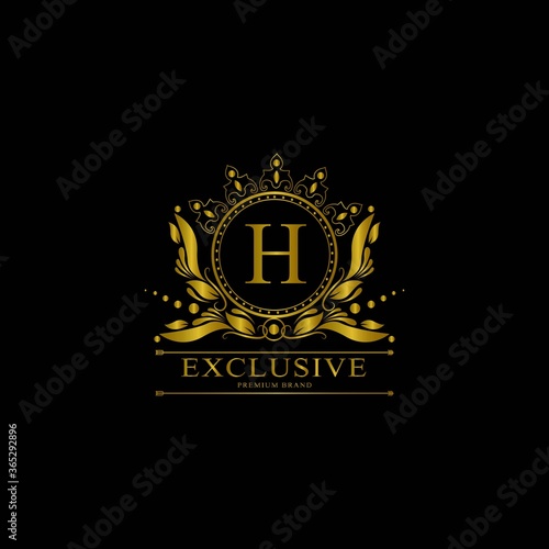 H Luxury Logo. Template flourishes calligraphic elegant ornament lines. Business sign, identity for Restaurant, Royalty, Boutique, Cafe, Hotel, Heraldic, Jewelry, Fashion and other vector illustration