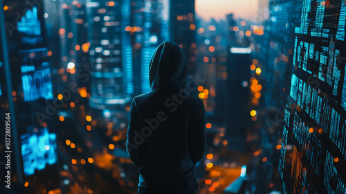 Hacker are planning to hack and attack networks and cyber security , innovative Smart city and graphs with statistics to analyze business potential and predict future developments in company growth.