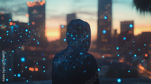 Hacker are planning to hack and attack networks and cyber security systems.Smart digital Innovation city with connection network reciprocity over the cityscape