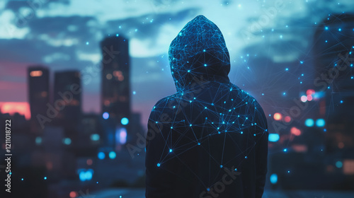 Hacker are planning to hack and attack networks and cyber security systems.Smart digital Innovation city with connection network reciprocity over the cityscape