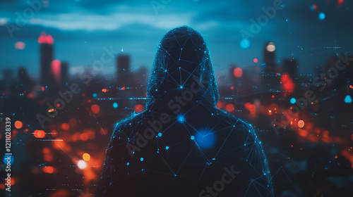 Hacker are planning to hack and attack networks and cyber security systems.Smart digital Innovation city with connection network reciprocity over the cityscape