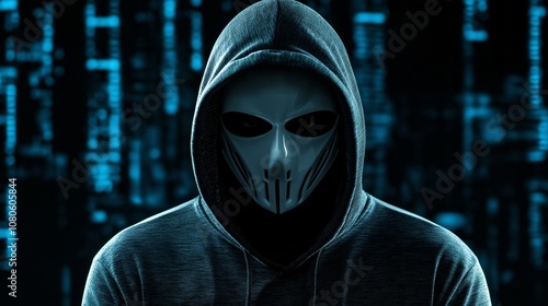 Hacker attack cyber security. Computer Hacker In White Mask And Hoodie