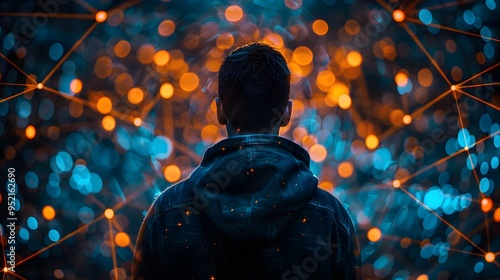 Hacker Infiltrating a Corporate Network with Digital Defenses Visualized