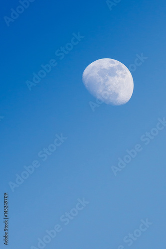 Half moon appear in the afternoon time in the sky with brach of tree at the foreground