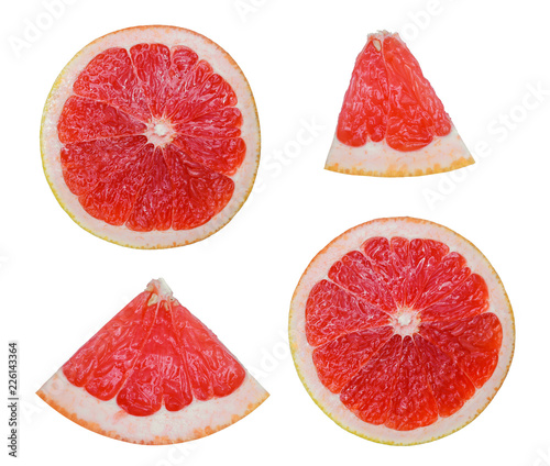 half sliced grapefruit isolated on white background,flat lay, top view