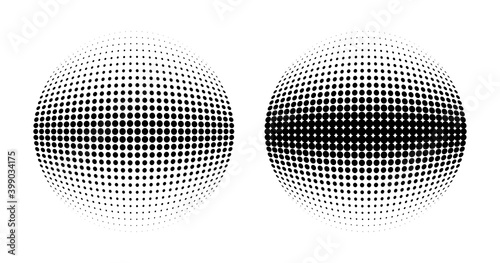 Halftone circle dots 3d sphere. Logo emblem design element for medical, treatment, cosmetic. Globe icon using halftone circle dots raster texture. Vector illustration.