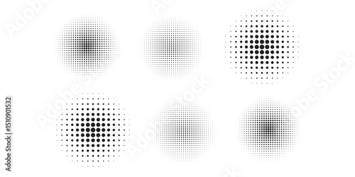 Halftone gradient. Dotted gradient, smooth dots spraying and halftones dot background seamless horizontal geometric pattern vector template set. unique dots modern circles