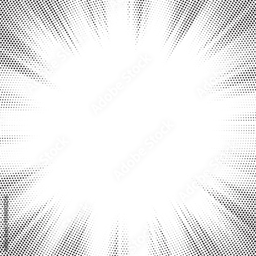 Halftone gradient sun rays pattern. Abstract halftone vector dots background. monochrome dots pattern. Vector background in comic book style with sunburst rays and halftone. Retro pop art design.