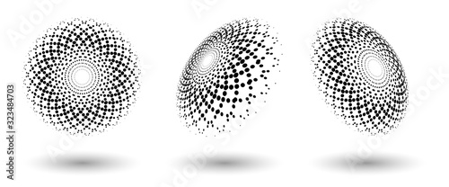 Halftone shapes, abstract dots logo emblem or design element for any project. Abstract dotted halftone vector with differents perspective