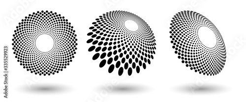 Halftone shapes, abstract dots logo emblem or design element for any project. Round icon or backgroud. Abstract dotted halftone vector with differents perspective