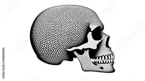 Halftone Simple Skull Profile Image: Abstract Skeleton Head Silhouette in Halftone Style