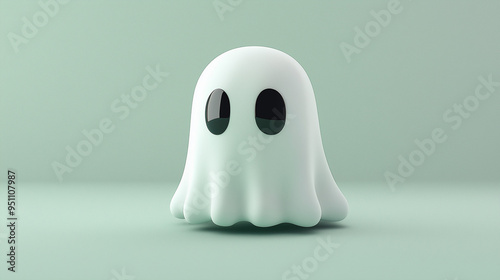 Halloween concept image: a small, simple cartoon ghost with a white sheet-like body and two large, black oval eyes