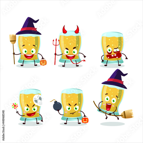 Halloween expression emoticons with cartoon character of glass of cider. Vector illustration