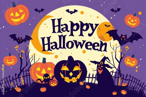 Halloween greeting card featuring the words "Happy Halloween" and image on the theme of Halloween