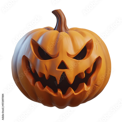 Halloween jack-o'-lantern pumpkin isolated on white transparent background