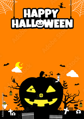 Halloween motif pumpkin house illustration with costume kids (poster size)