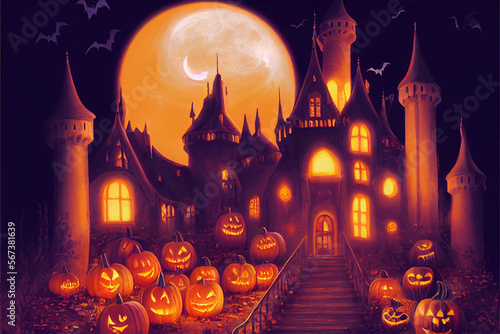 halloween spooky castle illustration Generative AI Content by Midjourney
