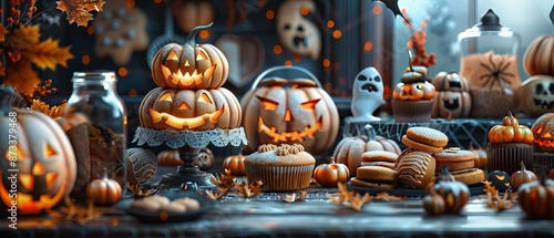 Halloween-themed baking session with spooky cookies, cupcakes, and festive decorations