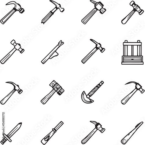 Hammer Black Line Editable Icons set