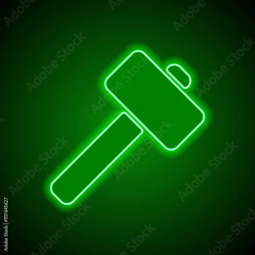 Hammer simple icon vector. Flat design. Green neon on black background with green light