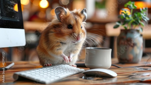 Hamster Sitting Next to Keyboard