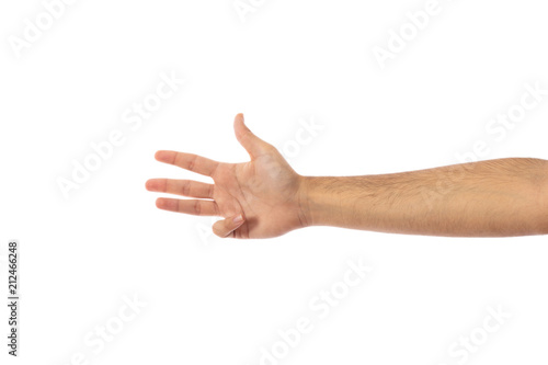 Hand counting four isolated on white background