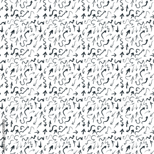 Hand draw arrows seamless pattern. Arrow of different shapes, linear symbols collection. Pointer direction, isolated vector illustration.