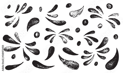 Hand draw brush quotes, commas, ornament, marks, splash and flourish set. Vector stock illustration isolated on white background for design template text and page decoration, headline, speech bubble.