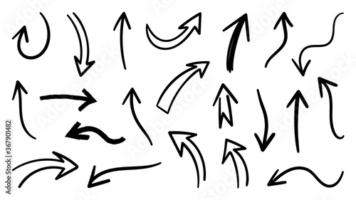 Hand drawn arrow vector icons set. sketch arrow design for business plan and education.