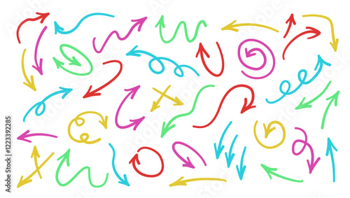 Hand drawn arrow vector icons. Sketch arrow design for business plan and education.