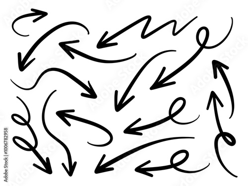 Hand drawn arrows collection Set simple flat arrows isolated on white background. Arrow mark icons and arrow paint. Stock vector. EPS10.