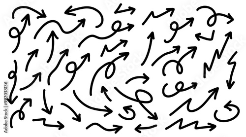 Hand drawn arrows collection Set simple flat arrows isolated on white background. Arrow mark icons and arrow paint. Stock vector. EPS10.