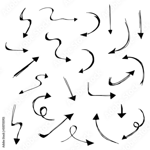 hand drawn Arrows icons Set. arrow icon with various directions. Doodle vector illustration. isolated on a white background