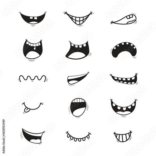Hand Drawn Cartoon Mouth Set Vector Design.