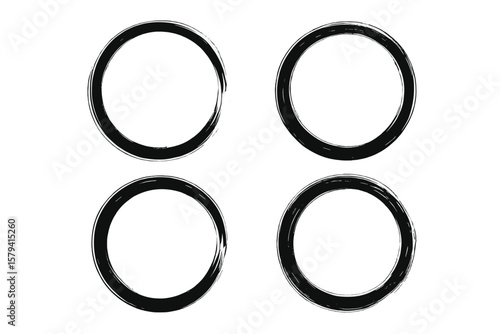 Hand Drawn Circle Brush Stroke Set, Grunge Ink Round Frames, Artistic Paint Stroke Circles, Abstract Logo Borders, Vector and Transparent PNG for Design, Branding, Emblem, Badge, Minimalist Decoration