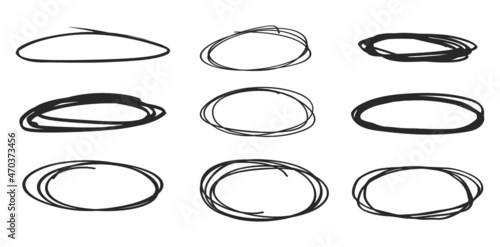 Hand drawn circle line sketch set isolated on transparent background. Art design round circular scribble doodle. Abstract graphic element for message note mark. stock vector.
