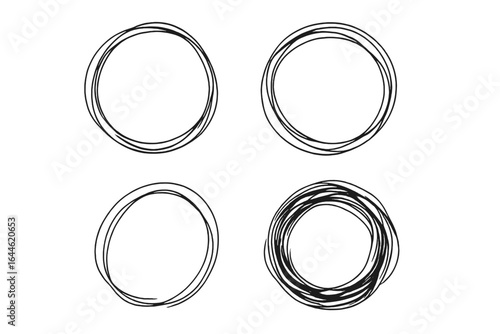 Hand drawn circle set. Scribble round frames collection. Abstract doodle ring shape. Vector sketch illustration. Line art border. Tangled chaos symbol. Design element.