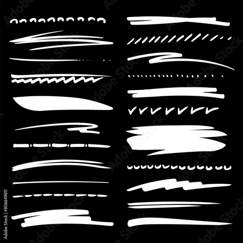 Hand drawn collection set of underline strokes in marker brush doodle style. Grunge brushes.