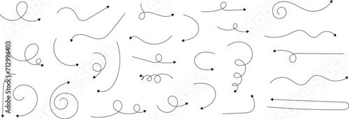 Hand drawn curved arrows set. Sketch doodle style collection. Route or pointers icon vector illustration