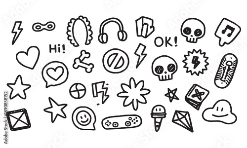 Hand Drawn Doodle Icons Set Fun Sketch Stickers and Cute Vector Elements