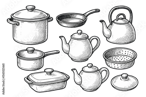 Hand drawn kitchenware vector illustration for culinary design and decor