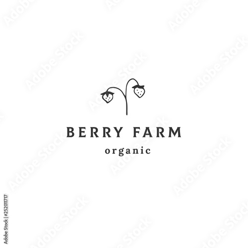 Hand drawn minimal logo template. Vector object, a strawberry.