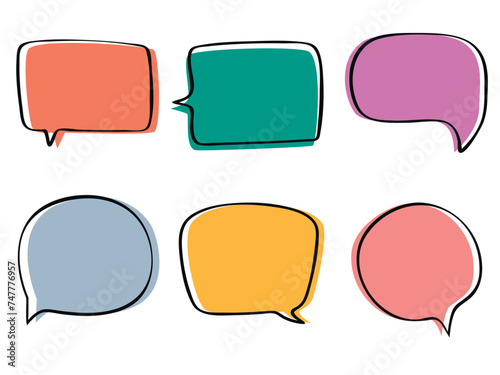 Hand drawn quote poster set. Isolated text box. Color empty speech bubbles. Vector illustration