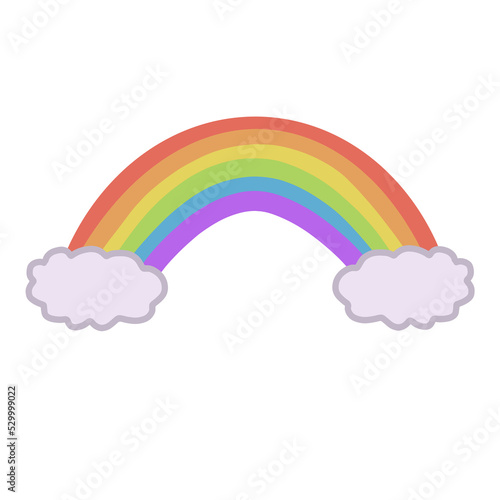 Hand drawn rainbow with clouds. Flat style.Isolated clipart.