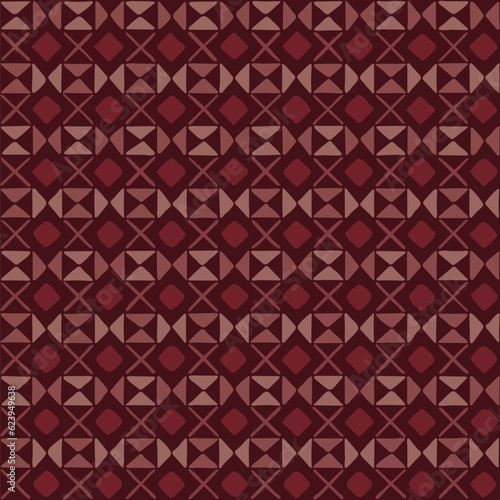 hand drawn squares, triangles, crosses. maroon repetitive background. vector seamless pattern. geometric illustration. fabric swatch. wrapping paper. continuous design element for textile, home decor