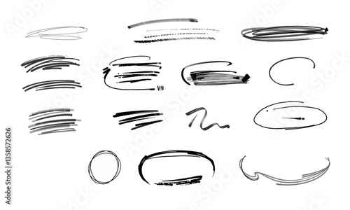 Hand drawn strokes in various styles and thicknesses, showcasing artistic lines and shapes. These versatile elements can enhance designs, illustrations, and creative projects with personal touch