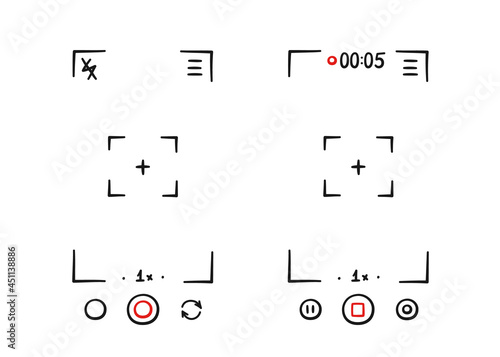 Hand drawn viewfinder frame of phone camera. Screen of video recorder digital display. Smartphone design template. Vector illustration isolated on white background in doodle style.