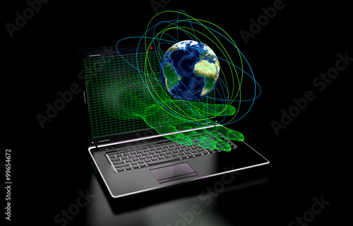 hand emerging from computer screen on a black background, We use the elements presented NASA