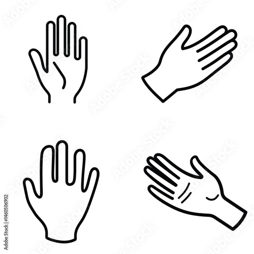 Hand Gesture Line Art Icons, Human Palm Outlines on Transparent Background
